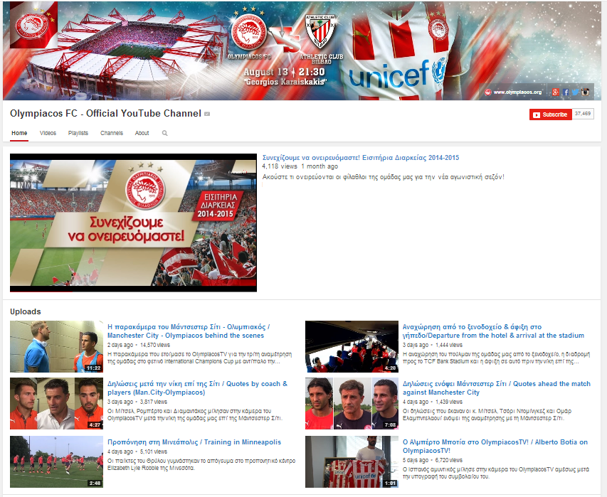 κανάλι της Π.Α.Ε. Ολυμπιακός στο YouTube www.youtube.com/olympiacosfc (δείτε την