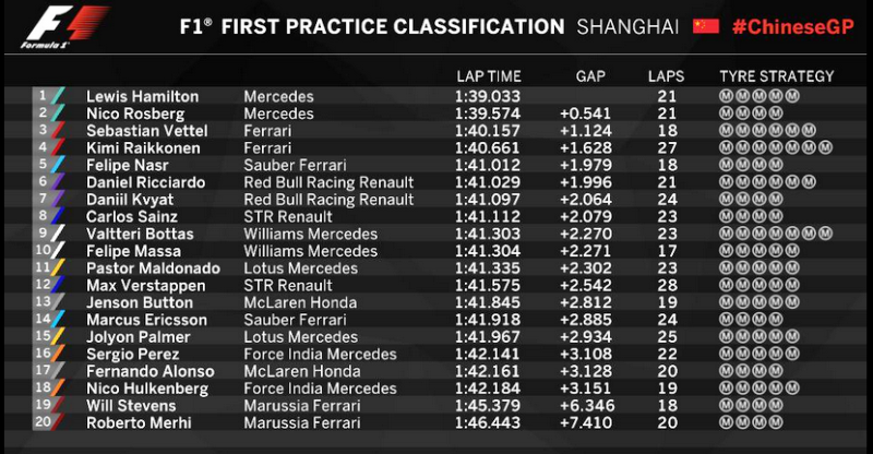 οι ελεύθερες δοκιμές στην Formula 1, στο γκραν πρι της Κίνας, με τον Λιούις Χάμιλτον να τερματίζει στην